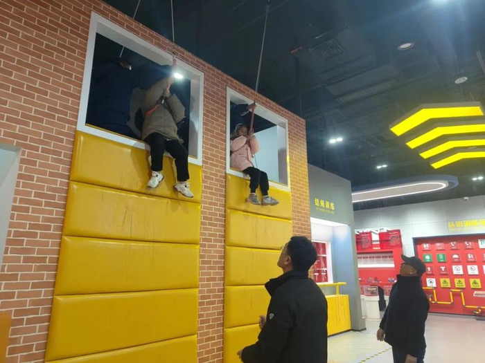 在互動體驗(yàn)環(huán)節(jié),消防員協(xié)助同學(xué)們穿戴消防頭盔和戰(zhàn)斗服。同學(xué)們切實(shí)感受到裝備重量,初步體會消防員執(zhí)行任務(wù)時的艱辛。消防員還親自示范了多個實(shí)用的消防技能與急救方法。在繩索速降演示環(huán)節(jié),只見消防員熟練地系好安全繩,迅速從高處滑落至地面,整個過程一氣呵成。同時,消防員詳細(xì)講解了每個動作要領(lǐng),如怎樣正確固定繩索、怎樣控制下降速度以及落地時的緩沖技巧等,同學(xué)們看得目不轉(zhuǎn)睛,不時發(fā)出陣陣驚嘆。
